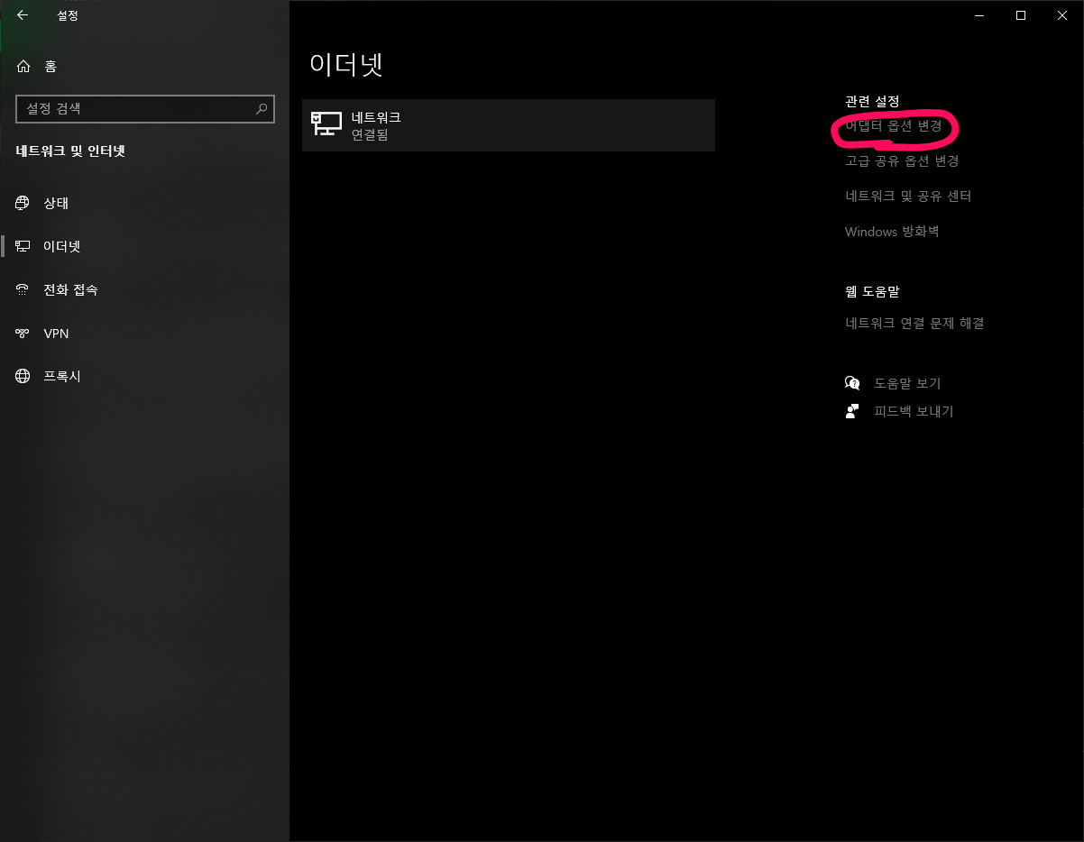 10. 어댑터 옵션을 선택한다.